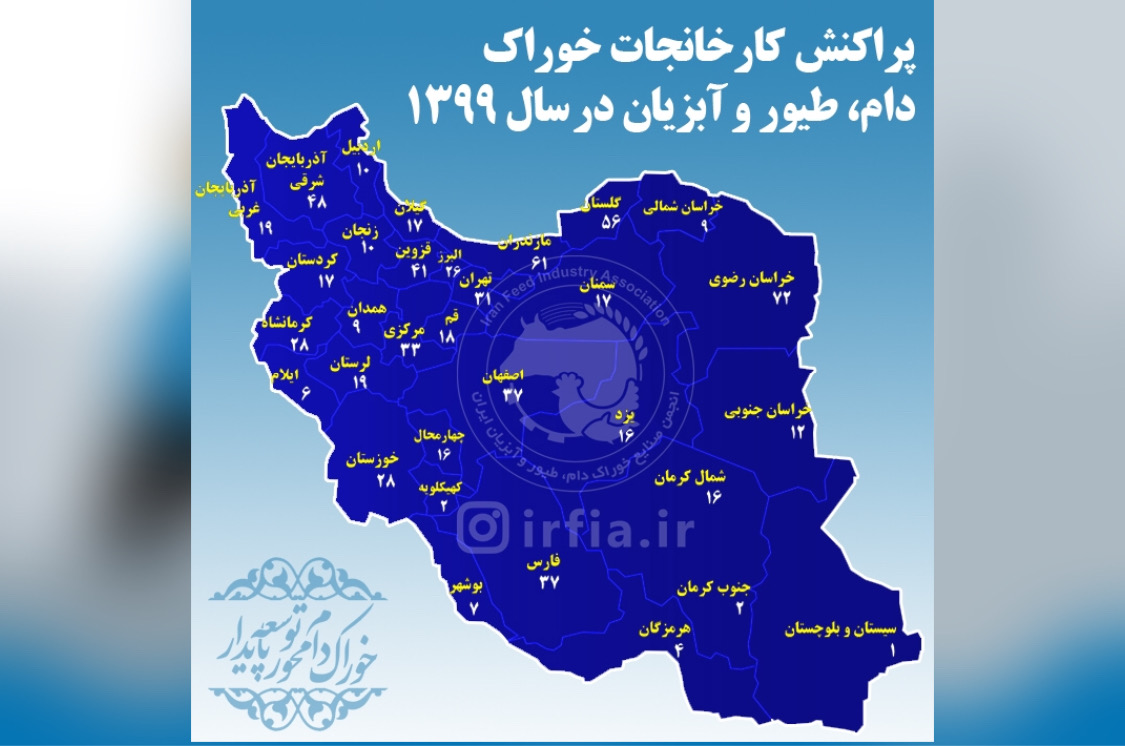 پراكنش كارخانجات خوراك دام، طيور و آبزيان در سال ١٣٩٩