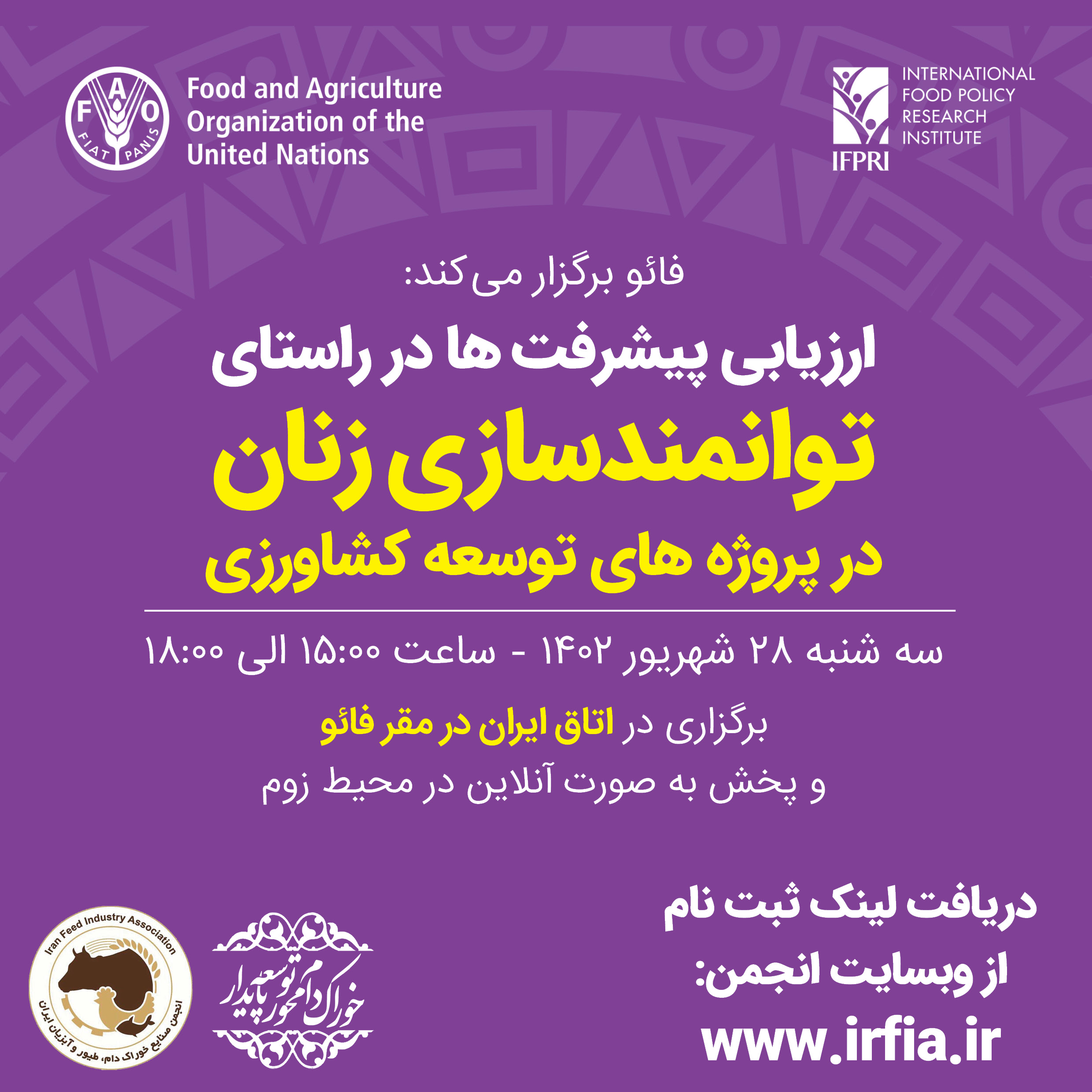 فائو برگزار می کند: ارزیابی پیشرفت ها در راستای توانمندسازی زنان در پروژه های توسعه کشاورزی سه شنبه 28 شهریور 1402 - ساعت 15:00 الی 18:00 برگزاری در اتاق ایران در مقر فائو و پخش به صورت آنلاین در محیط زوم لینک ثبت نام در زوم …