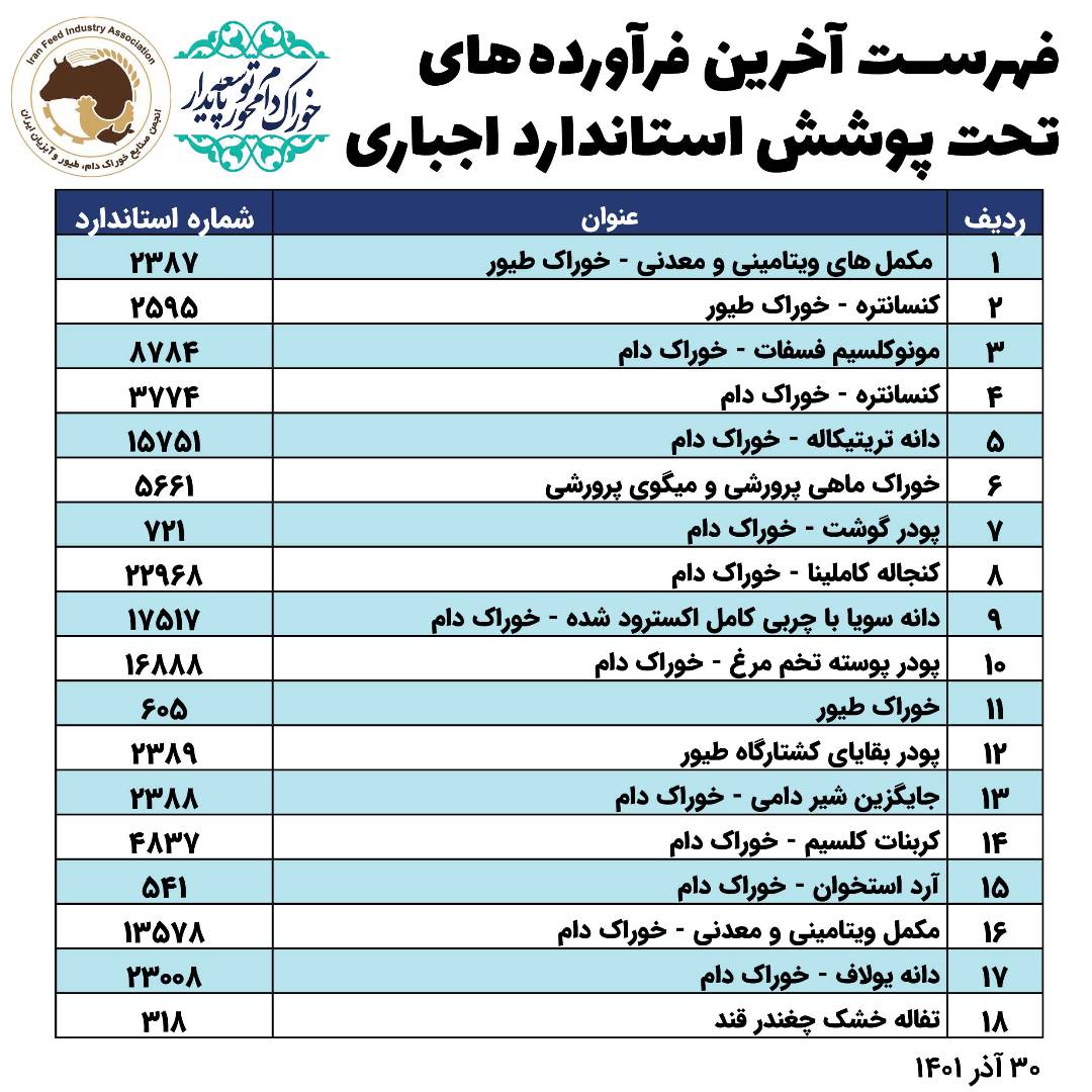 فهرســت آخرین فرآورده های تحت پوشش استاندارد اجباری