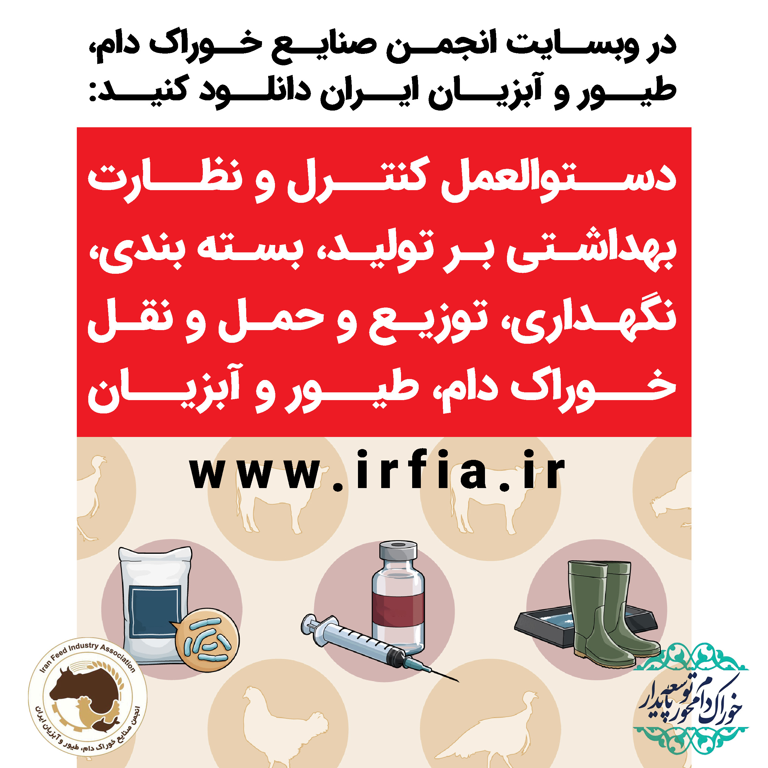 دستوالعمل کنترل و نظارت بهداشتی بر تولید، بسته بندی، نگهداری، توزیع و حمل و نقل خوراک دام، طیور و آبزیان