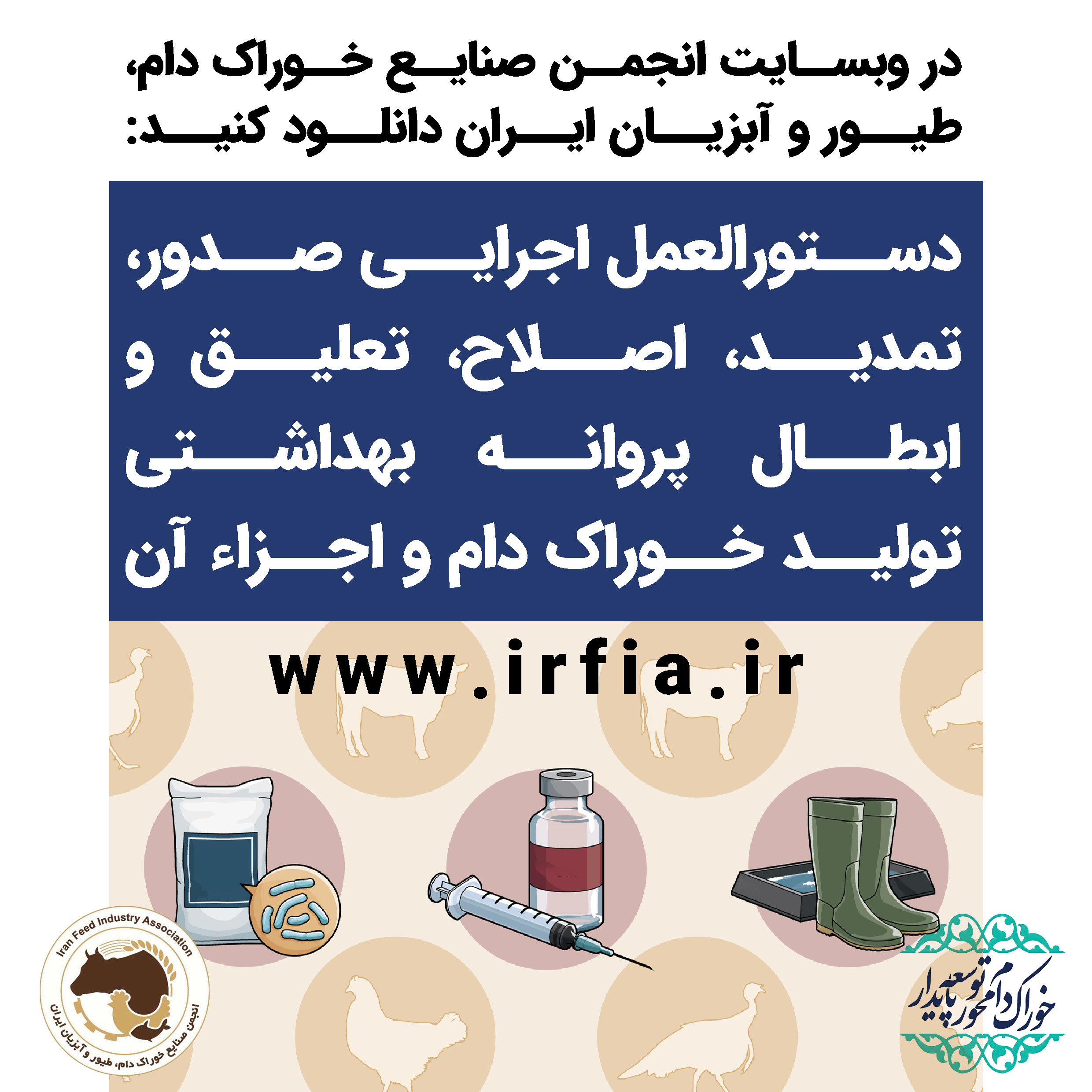 دستورالعمل اجرایی صدور، تمدید، اصلاح، تعلیق و ابطال پروانه بهداشتی تولید خوراک دام و اجزاء آن